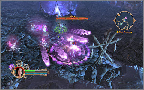 After a series of fights with hordes of Lascanzi, you will reach a boss - Vera the witch (M5,3). You have to look out for her and divide attacks between her and her underlings (she can revive them).