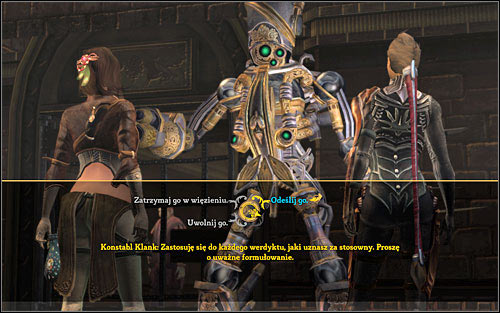 Fiddlewick will ask you to take care of Krug's case. Head to the monster's cell (M21,5). Irrespectively of what your sentence will be, the mage Reinhart Manx will join your team. If during the conversation with the newcomer you will decide to forgive the murderer, you will additionally gain his trust.