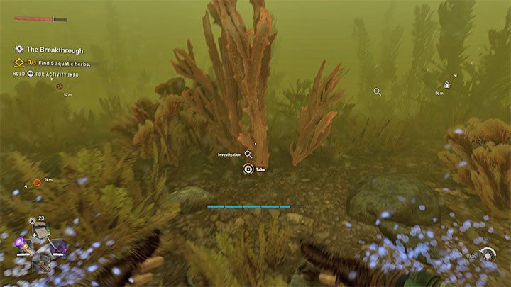 Go outside and dive. Use your survivor sense to easily find the plants on the bottom. You need to get 5 herbs.