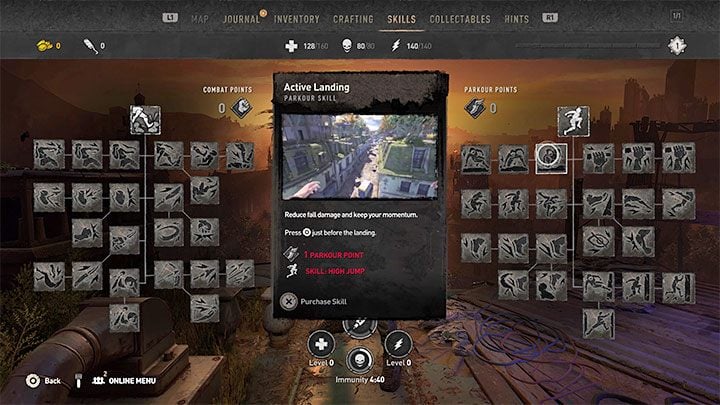 - Falling - you can partially circumvent this problem by buying the Active Landing and Safe Landing skills, which allow you to absorb some or all the fall damage you would usually take. Plan all your actions during parkour, look for Amortizers below you and watch out for your Stamina Bar when climbing.