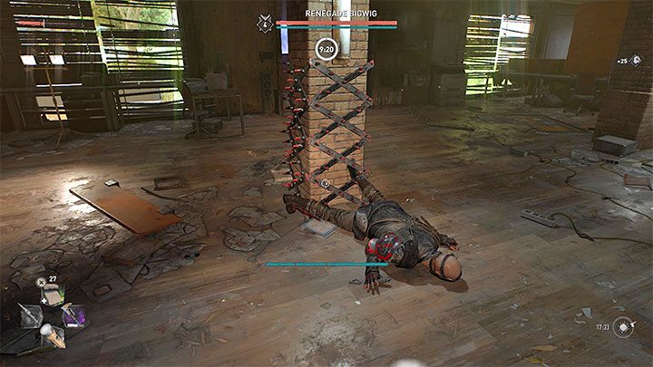 In a large room you'll encounter a group of renegades led by a tough enemy. There are plenty of spikes in the arena - you can push the renegades into them with kicks and charges. Molotovs will also come in handy to set enemy groups on fire. When fighting the leader, focus on dodging his attacks.