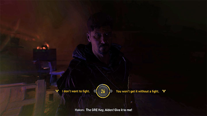 You'll start a conversation with Hakon during which you must make a choice under a time limit - decide whether you wish to duel him or not.