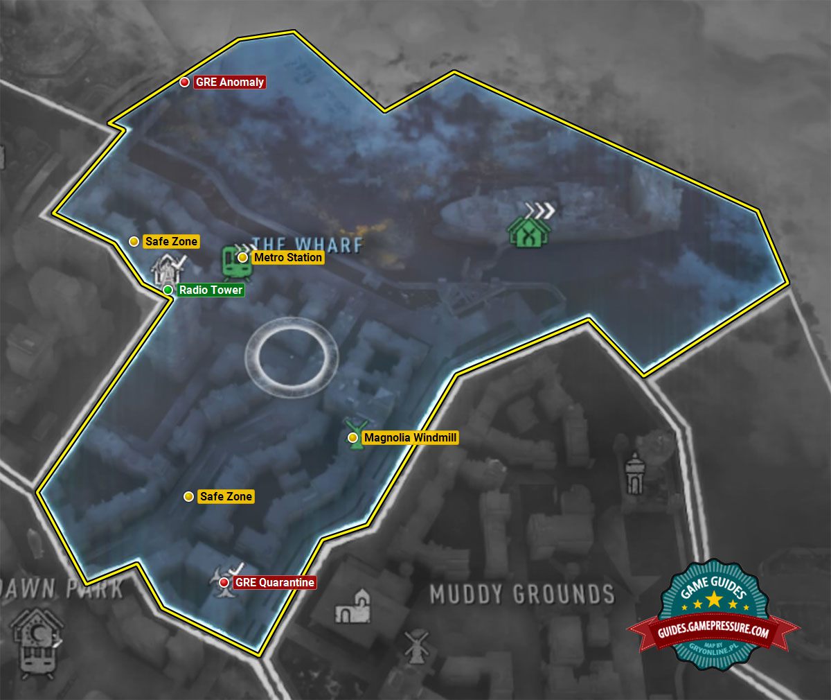 There is 1 safe zone in The Wharf. It allow you to hide from zombies and pass the night safely. You can often find collectibles in these zones.