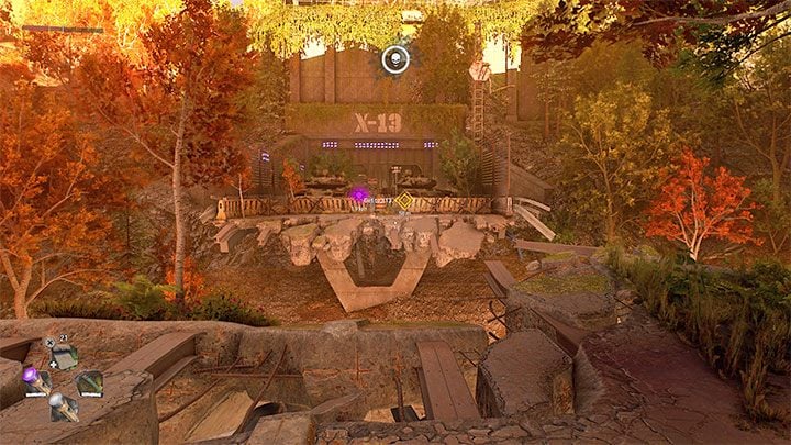 The entrance to X-13 is clearly visible and pictured above. Jump over the destroyed part of the viaduct, crawl under the gate again and reach the marked elevator.
