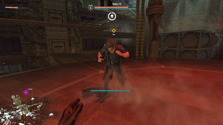 In the second phase Waltz will add surprise attacks to his moveset - he'll charge at you from far away. To avoid damage you must dodge perfectly to the side right before he can hit you.