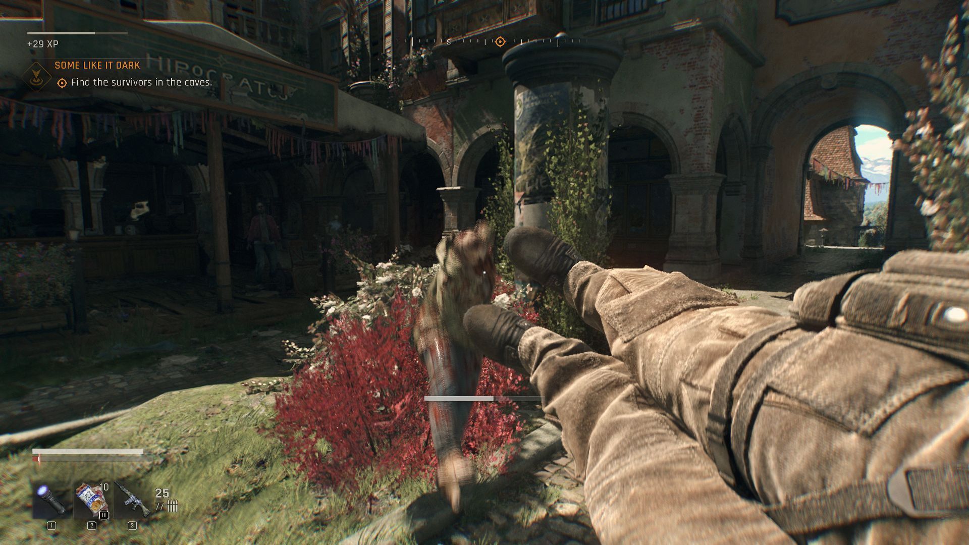 Invaluable when fighting a group of zombies. Kicking one opponent while jumping at others will cause them to be stunned for longer. Moreover, it is an ideal tool for kicking enemies off roofs. However, be careful, as this move uses a lot of stamina.