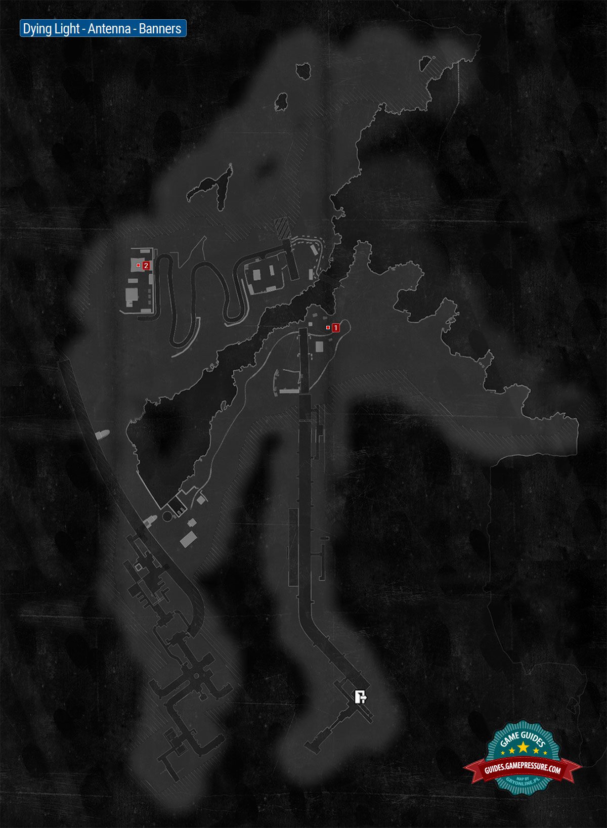 The above map presents locations of flags near the Antenna. Just to remind you, you visit this area, for the first time, while completing the thirteenth main mission - Broadcast. Also, you can return here later into the game. It is a good idea to use the Survivor Sense to find the flags, but you will be able to locate then without it.