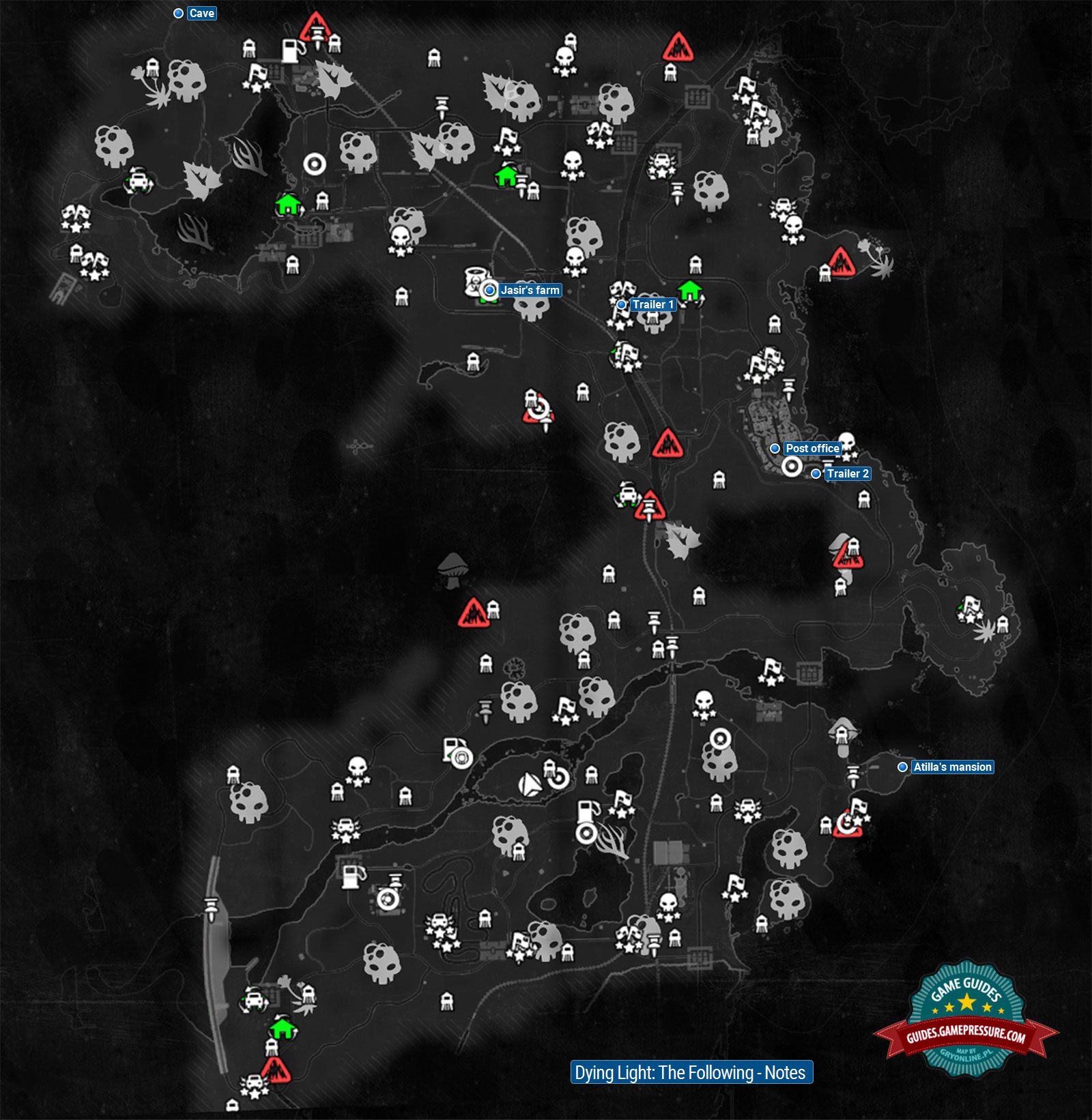 Notes are one of the categories of collectibles in Dying Light: The Following and usually these are notes or letters left by someone else. You can find them in quest locations and other important locations. In total there are thirty three of them and the map seen above should help in locating them. The more difficult ones have been described further in this text.