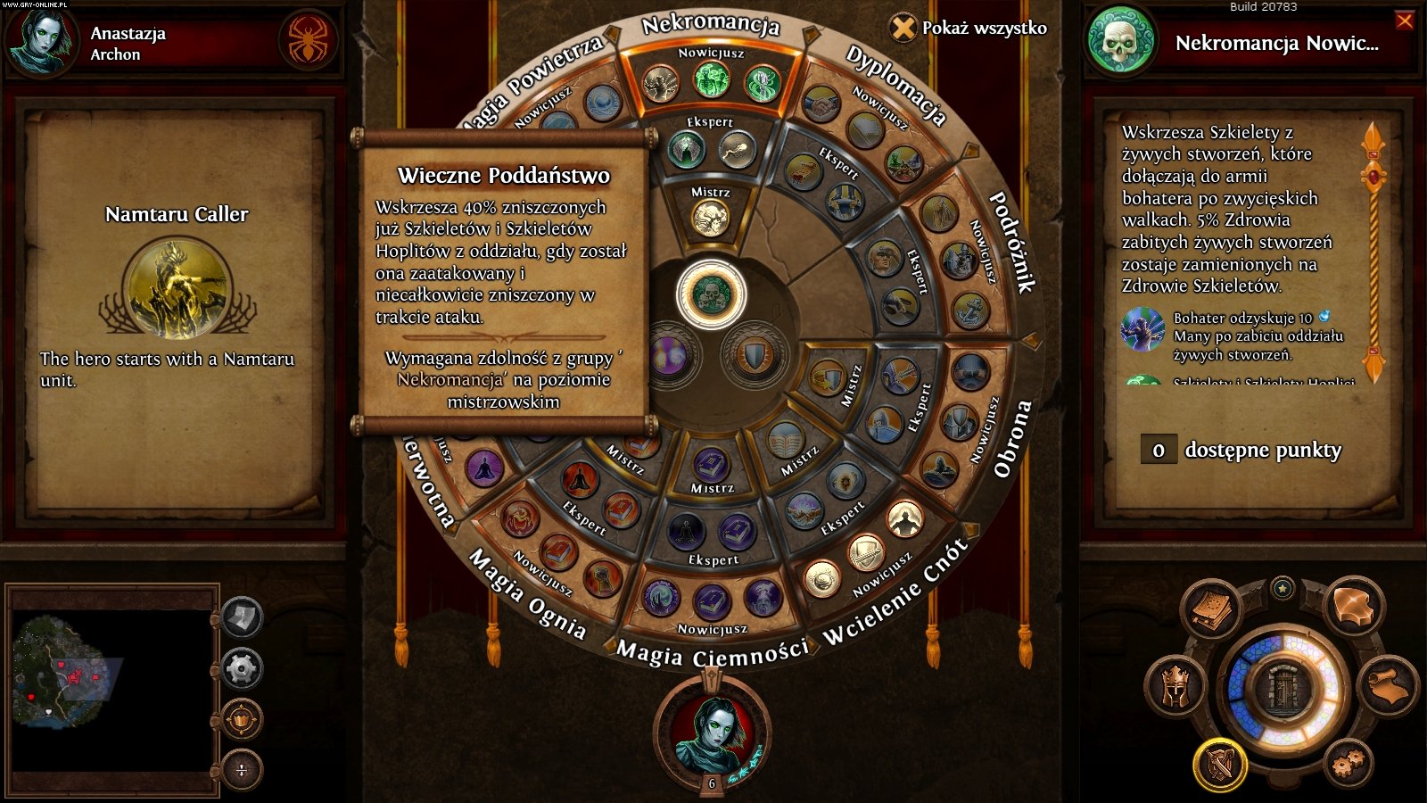 In this respect the developer also decided to remain faithful to the sacred tradition – which will grant them the gratitude of many players for getting rid of the mechanics of blood and tears, dynastic options, and other such frills, while not quite abandoning new additions. The latter can be seen primarily in the development of characters – yes, this is about these majestic and somewhat frightening wheel systems. There, we can find skill trees whose construction and nature in general are close to that which we know from the previous versions. We therefore have a division into basic, expert and master level of abilities, such as economy, leadership, art of war or particular schools of magic, and minor "perks" within each level. The problem consists in the fact that all this is available for the player from the beginning of the game – and we are talking about 10 skill trees per character. With each level the hero gets 1 point that can be allocated to anything visible on the screen.