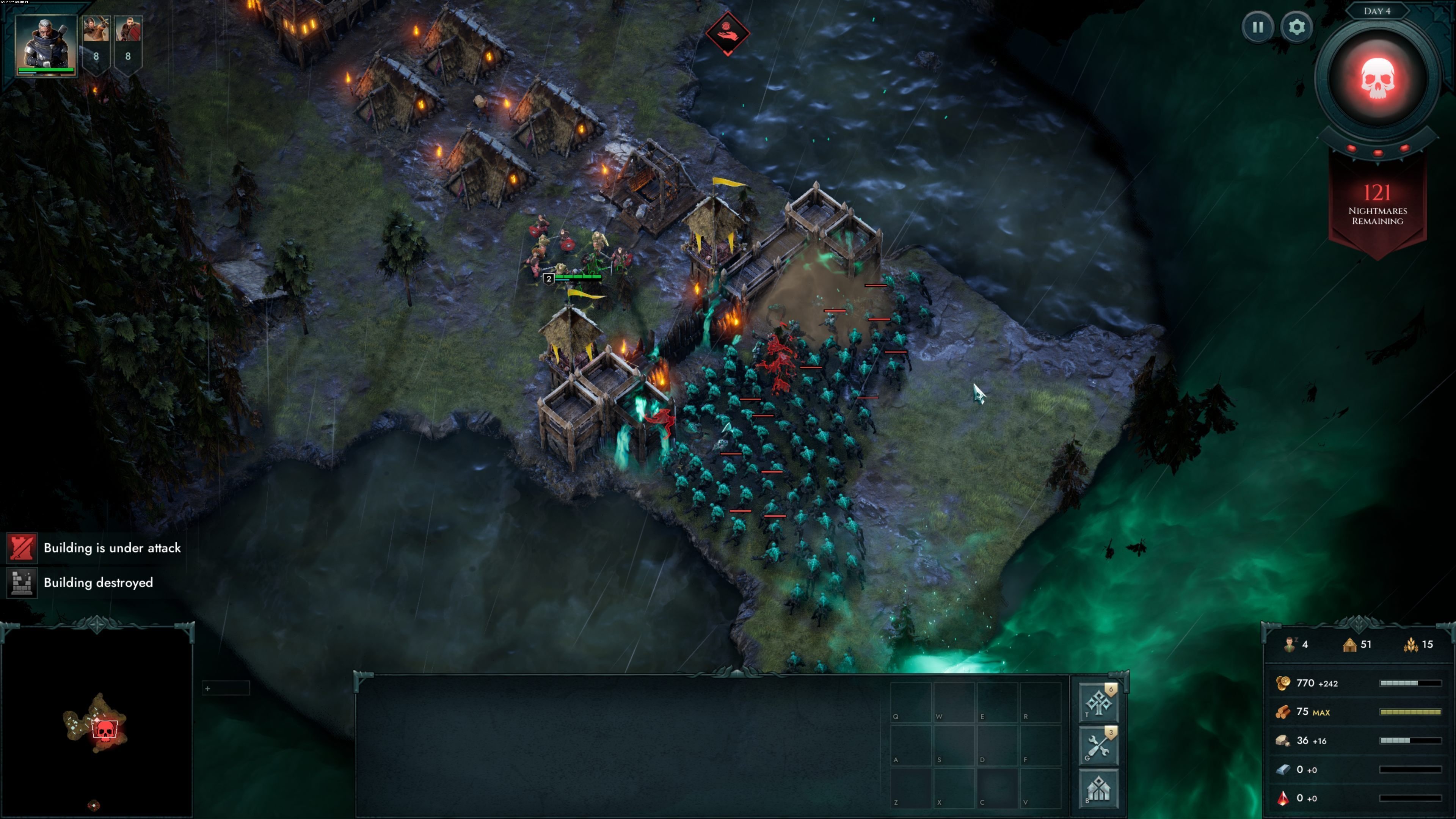 What sets Age of Darkness apart from most other RTS games is the extremely hostile environment. As in They Are Billions, we have to fight for every piece of land, and natural bottlenecks present opportunities to set up fortifications and take a breather, if only for a moment. However, these moments of respite are, unfortunately, quite rare, because if we want to prepare for the next waves of enemies, we face a constant shortage of resources.