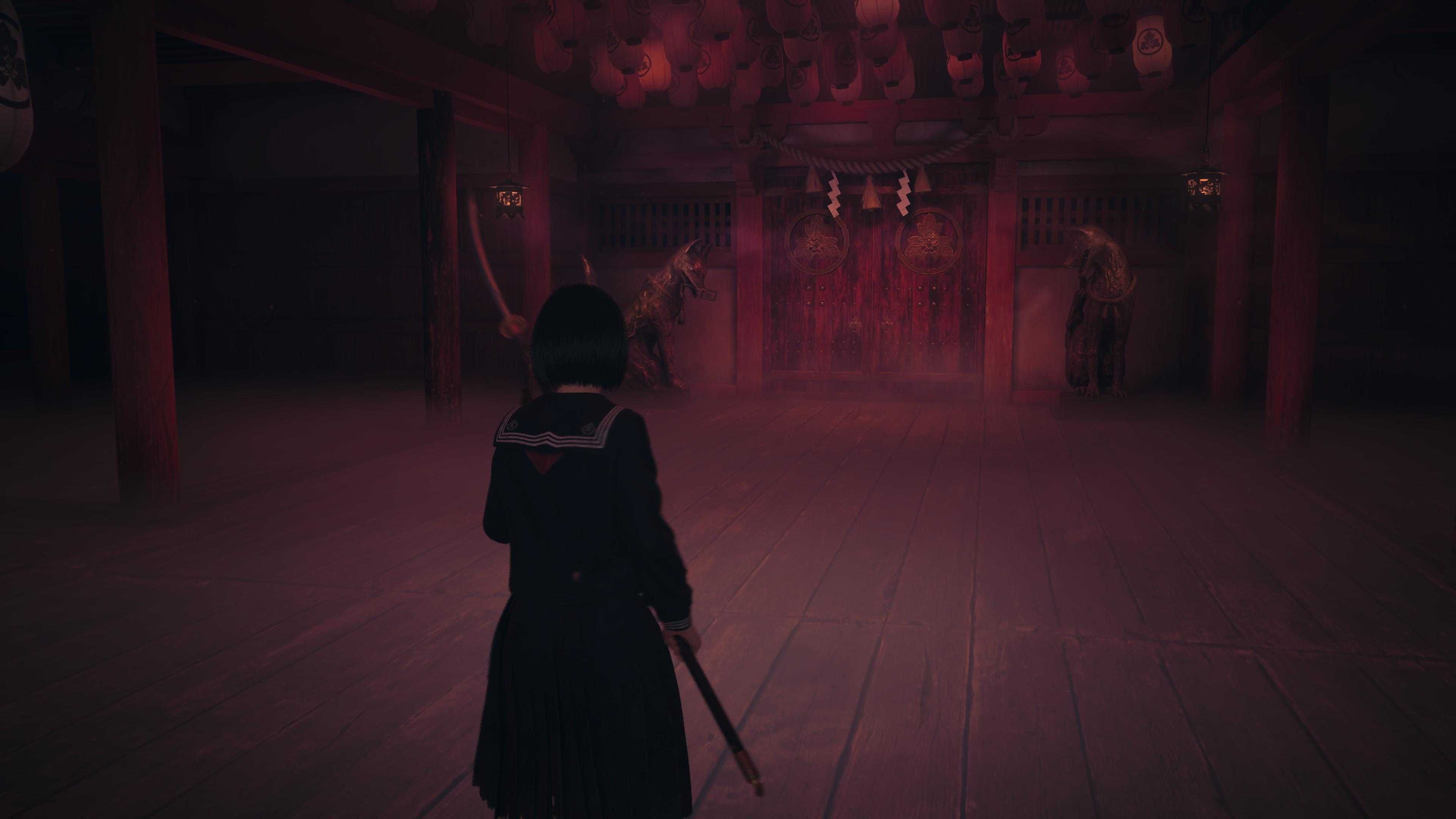 However, the best element of the gameplay is the puzzles combined with exploration. The foggy Ebisugaoka and its surrounding areas are captivating, providing artistically beautiful views with a horror aesthetic. Clever puzzles make you think hard and each stage in the game has its own environmental challenges, using the theme of the location and the traumas troubling Hinako at that moment. The developers constantly play with expectations and throw us into unexpected moments, offering a multitude of ideas for the course of the game. For example, when looking for the keys at school, we'll have to crack the lockers' codes based on the students' mysterious notes. Going to my friend's house, we will have to cross a foggy field and solve the riddle with the scarecrows to show us the right way. Every now and then, reality merges with stages in a dark temple where... no, I don't even want to reveal the most surreal and crazy moments, because it's best to just dive in blindly and experience the game without knowing what awaits us. I can assure you that there's never a dull moment here, but the constant stress doesn't really give us a break. Thanks to this, the game has a perfect pace of gameplay, and I didn't experience any unnecessary or annoying fillers designed to artificially extend the fun. The first playthrough took me about 12 hours to complete, and it was a masterfully executed game. It left me wanting to start another run right away, seeking more answers to the questions that were bothering me.
