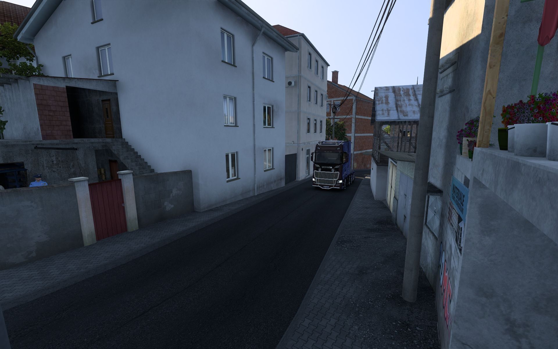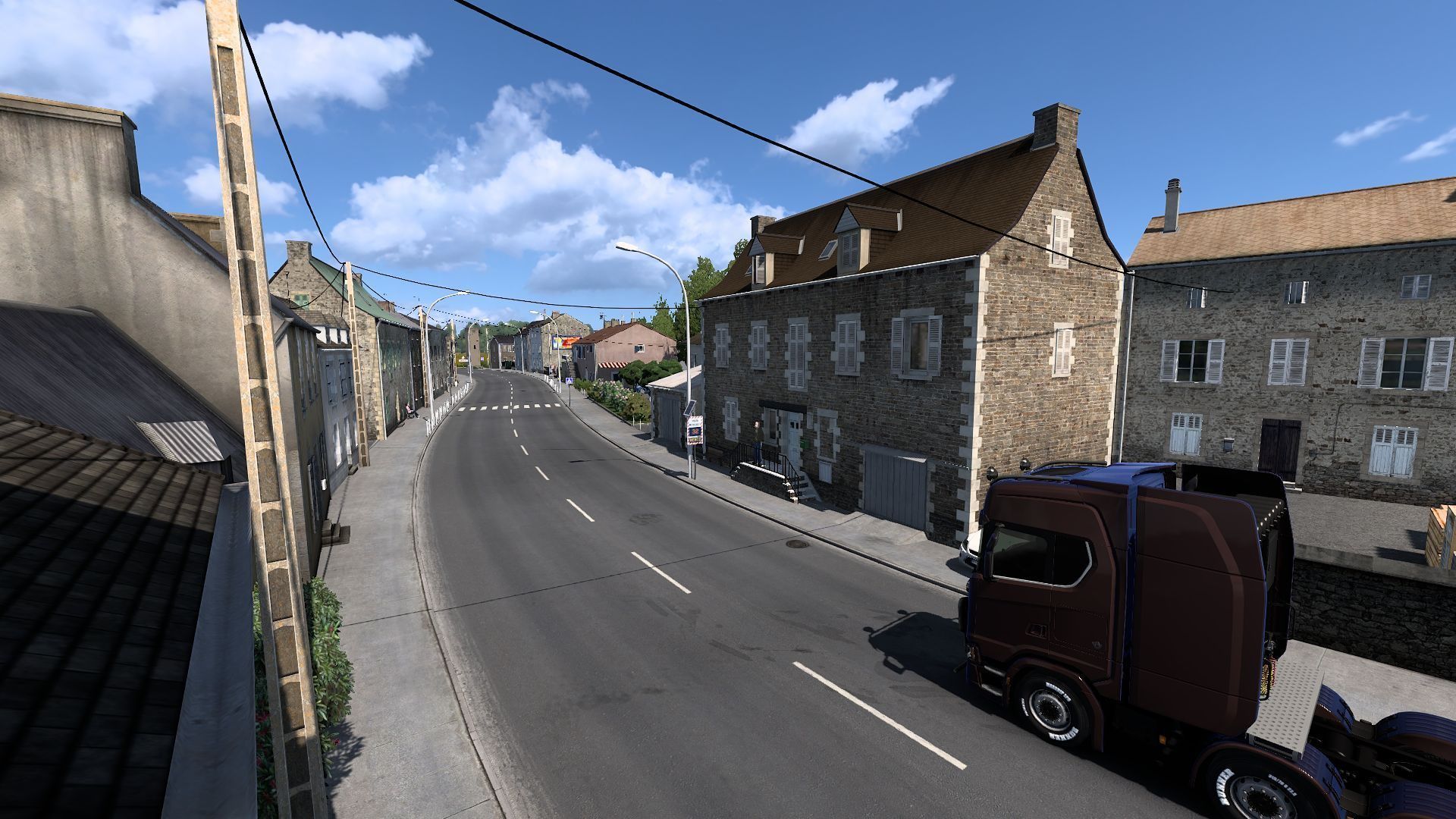 The developers have focused on highlighting the modern character of France. You'll find many comfortable, wide, and modern highways, especially in the central part of the country. However, there are also narrow paths leading through charming, tiny towns. You should consider this when planning your route, as the roads going between houses can be really narrow, requiring you to significantly reduce your speed. One such route can be found near Limoges, where, in addition to atmospheric townhouses, you'll see a gate tower occupying half the road. A viewpoint and a photography challenge are located at coordinates -35709.9;39.961;23097.3;0.0716482;-0.0820255.