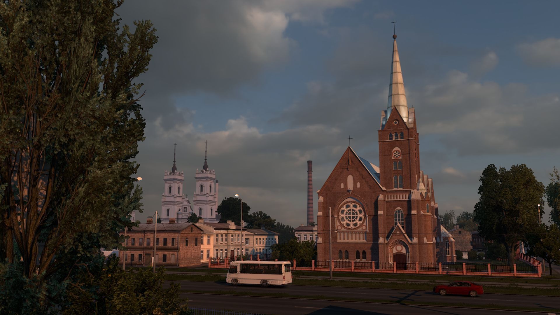 When it comes to roads, you have access to many modern, wide highways here. Particularly impressive are the areas around Saint Petersburg, where you can find massive bridges connecting road and rail transport. There are also smaller paths, like the unmarked one south of the town of Verspils near the gas station (the coordinates are 36425.6;19.4179;-36321.9;-0.184936;-0.237363). It leads through a charming spot where you'll find an old house. In terms of architecture, you'll also encounter examples of post-war modernism, mainly in the form of suburban housing blocks. However, there's no shortage of the region's characteristic classical-style buildings.