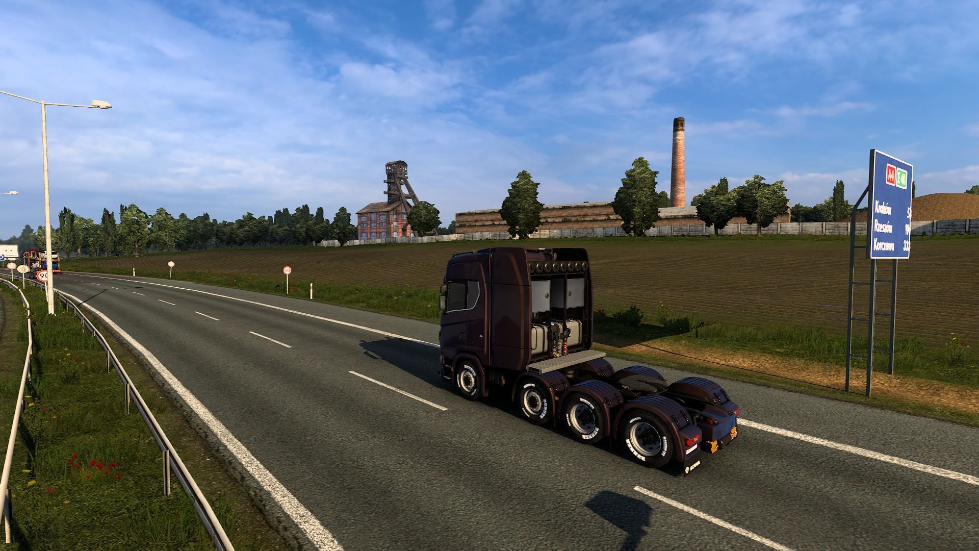 The expansion is dominated by two-lane roads, but you'll also find plenty of narrow routes, including those connecting larger cities like Banska Bystrica and Kosice. Especially the eastern part of the map is full of less comfortable roads. However, you can notice signs of the region's progress, such as the modern Katowice surrounded by skyscrapers. The industrial character of Silesia is highlighted by the inclusion of a mine shaft tower on the road leading to Krakow. Unfortunately, in reality, the structure was demolished a few years ago.