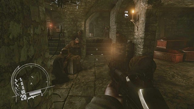 After you take several steps in the tunnels, your ally stops and asks you where you want to go. There are two options to choose from. The first one is planting explosives on the wall of the church and the other is entering the church, silently, from the side of the catacombs. You can choose only one method here.