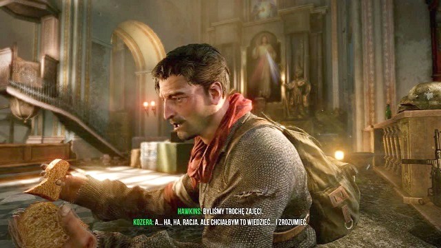 IN the case, in which you go right, right after a moment, you will cut to catacombs under the church, where you encounter quite a number of rebels. Without wasting time, climb up the stairs, following Kozera.
