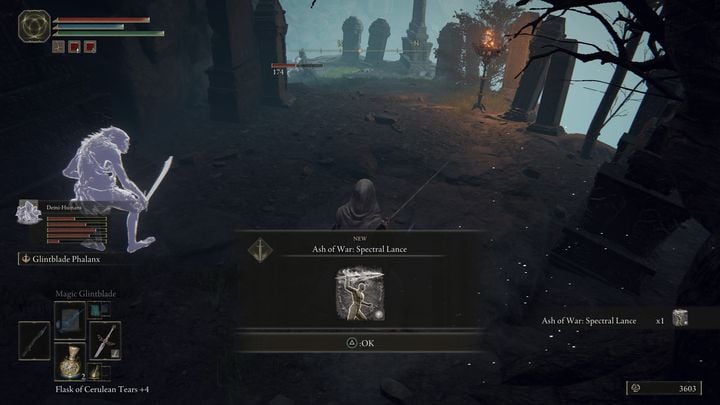 Ashes of War are special items that allow you to change the active skill of your weapon. Thanks to them, you can exchange your weapon skill for a completely new one. You activate them by pressing the button responsible for using skills. Spirit Ashes, on the other hand, are items that, when activated, summon spirit companions that will help you in combat.