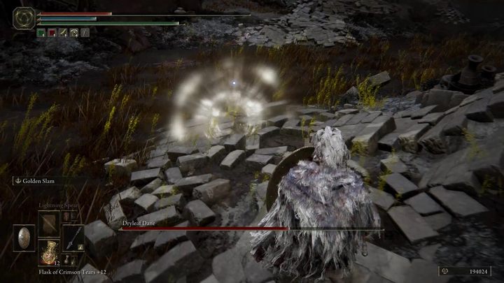 Directly east from Highroad Cross site of grace, you'll find another site - Moorth Ruins. Here is where Dryleaf Dane is found - to continue, you need to approach him and perform the May the Best Win gesture. This will start a duel against the monk.