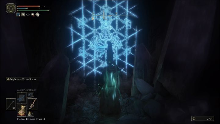 Inside you will find a basement with another hidden wall. It covers a room with a body where you have to place Sellen's Primal Glintstone.