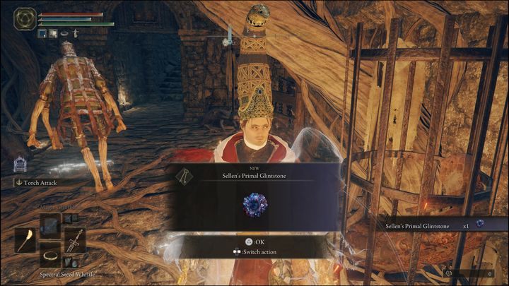 If you decide to fight Sellen and side with Jerren, then after defeating the sorceress, you will receive the Witch's Glintstone Crown and Sellen's Bell Bearing. You can give the bell to the Twin Maiden Husks at the Roundtable Hold. Thanks to it, you will still be able to buy spells offered by Sorceress Sellen. After winning the fight, Jerren will give you the Somber Ancient Dragon Smithing Stone. This is a blacksmith item required to upgrade special weapons to their highest level.