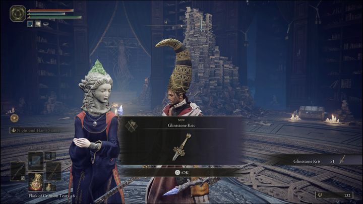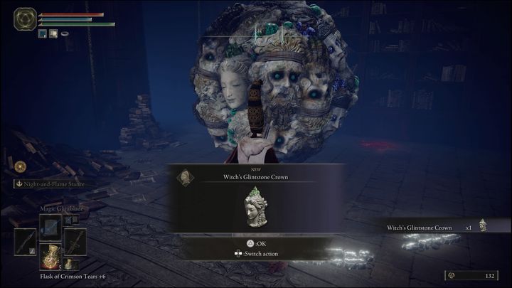 If you rest at the site of grace and return to the Raya Luccaria Grand Library, you will see that Sorceress Sellen has transformed. Now there is a helmet next to her - the Witch's Glintstone Crown, which you can pick up.