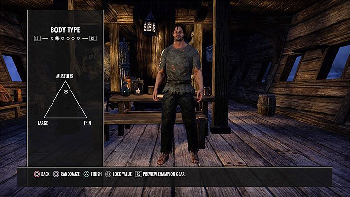You can use the slider to determine the overall shape of your character's body - you can make your character look large, muscular or thin.