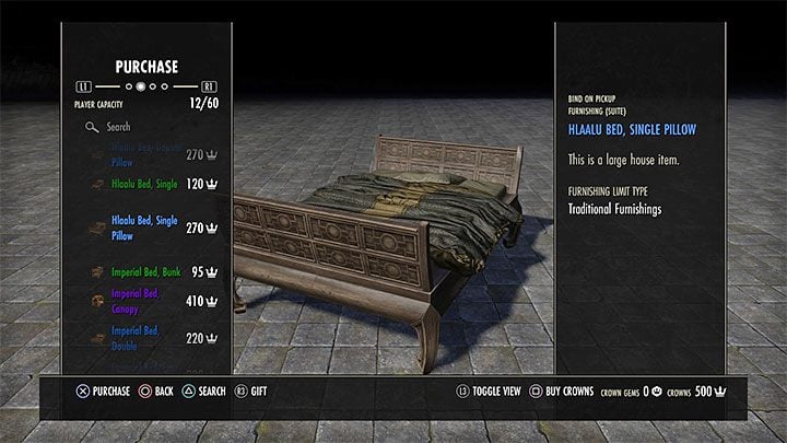 - You can choose the Crown Store from one tab of the options menu. Take a particular interest in the Furniture category. These will mainly be larger furniture pieces and sets of items.
