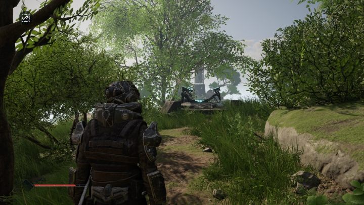 To unlock fast travel, you will need to discover a teleporter, i.e. the device from the screenshot above (all teleporters look the same). Simply approach one of these points (or, more precisely, enter it) and the teleporter will be unlocked. From this point on, you can return to the fast travel point from any location free of charge using the world map screen.