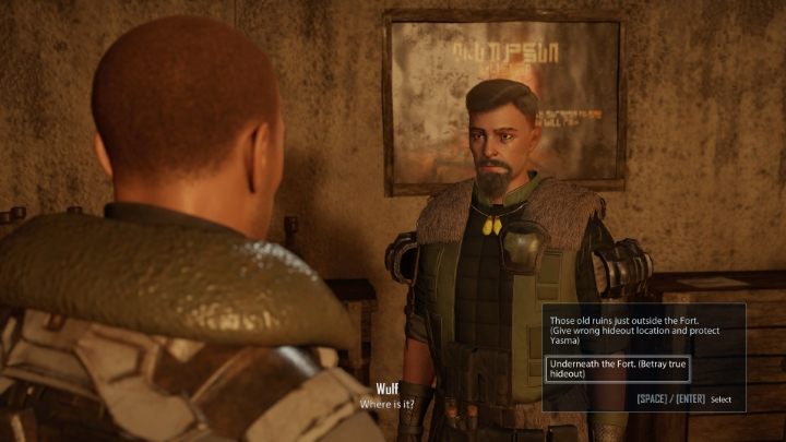 In the hideout, start a dialog with a character named Yasme. She will want to recover the stolen item. Now you have to make a decision: