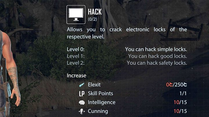 As a reminder you need at least Level 1 in the Hack skill from a trainer. To learn it you need at least 15 Cunning and Intelligence, 250 elexit and a single skill point. Try to unlock this ability as soon as possible so you can open all easy safes you find.