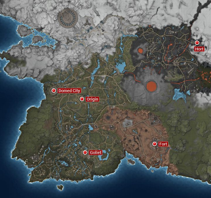 The world of Elex includes four big cities and the Origin village (refer to the map above). Entering different locations isn’t always safe; you can check which locations to be careful with just below: