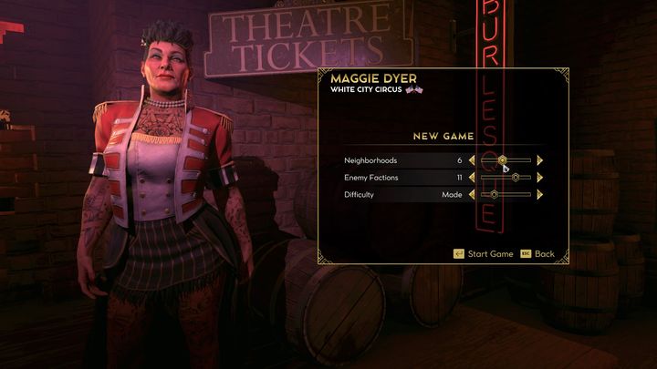 When starting the game, you must also choose the difficulty level, the number of neighborhoods, and enemy bosses. For the first run, choose a low difficulty level and only a few areas to familiarize yourself with the basic mechanics. Once you are familiar with the game, you can restart it - putting it on higher difficulty and adding more opponents.