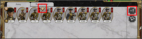 Remember to replenish your regiments after each battle. The most experienced troops can be combined (marked as red on the picture below). You can call some reinforcements to the less meritorious . As a matter of fact you will get some very good regiments and more of troops that have to gain some experience in the next battles.