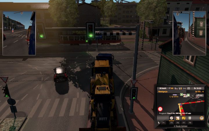 The city itself is rather small. There are a few narrow roads, a few buildings, a few intersections with signals. In the north there is the second part of the city, you can reach it by driving around and passing a few roundabouts. In the city and around it there are three gas stations, parking, garage that you can buy. No truck dealers here or a job agency. In the area there are only four transport companies.