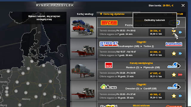This skill allows for transporting fragile cargo such as glass, electronic devices or cars. The fragile goods are marked with glass on the order list. This skill gives you following bonuses: