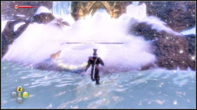 Go forward and you'll reach a little bigger room with Hobbes. After dealing with the enemies, shatter the stalactites blocking your way #1 and jump into the hole. After a quite long flight, head forward. The next passage is blocked by a big piece of ice #2, which you unfortunately cannot destroy with your sword, gun or magic. In the centre you'll find a lever, pull it and the ice block will melt.