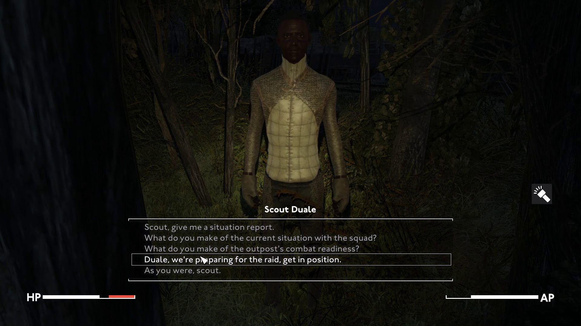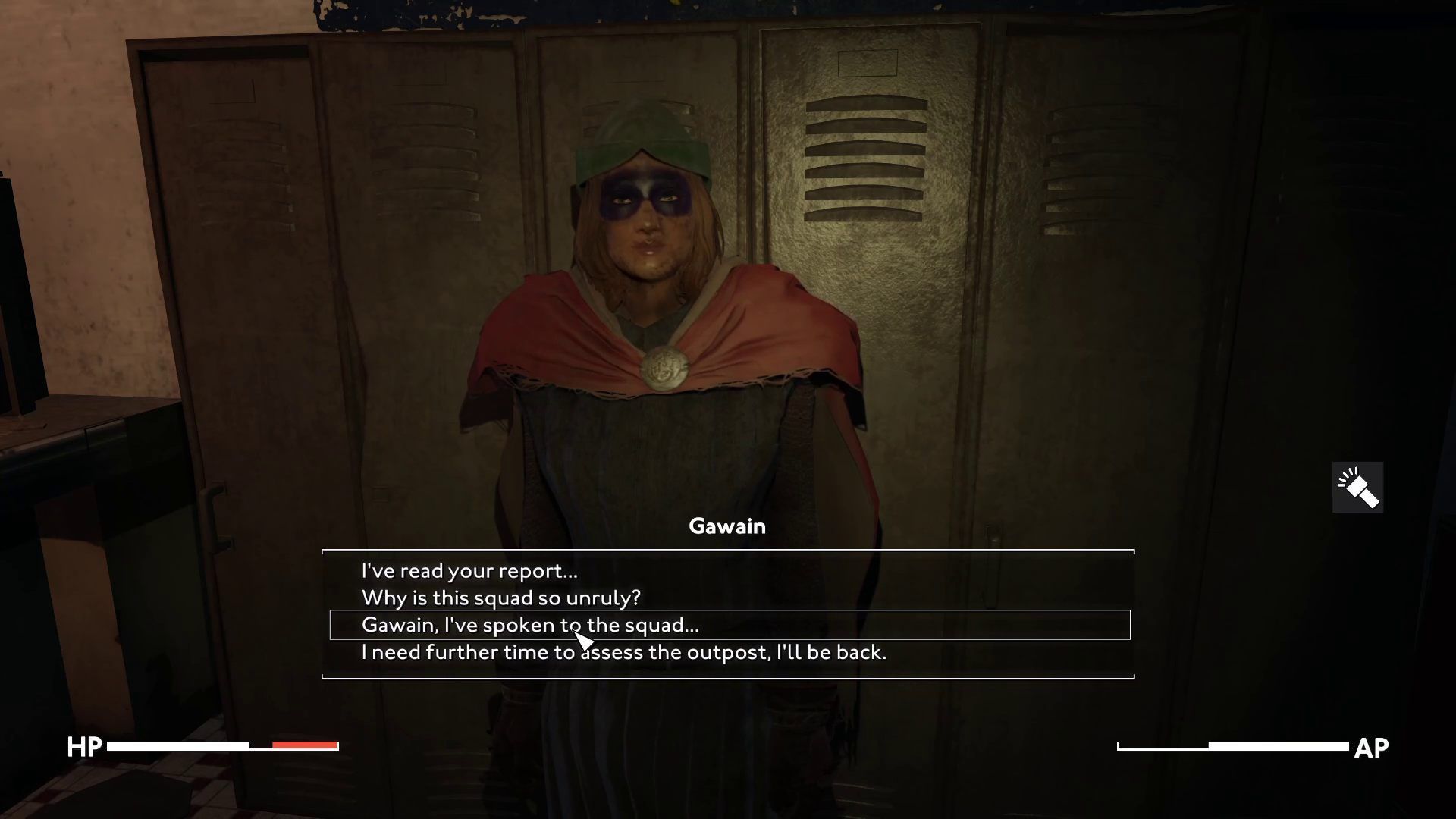 Upon arrival, confirm your readiness to Gawain. The knight will offer you two attack options: a frontal attack or a gradual and silent takeover of subsequent parts of the building. We opted for the second option.