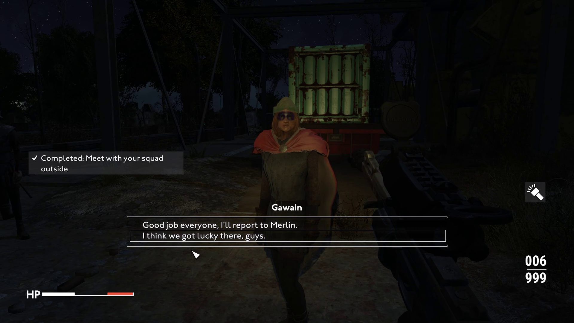 Complete the optional mission objective and talk to the soldiers marked on the map. After gathering information from them on the condition of the outpost, return to Gawain.