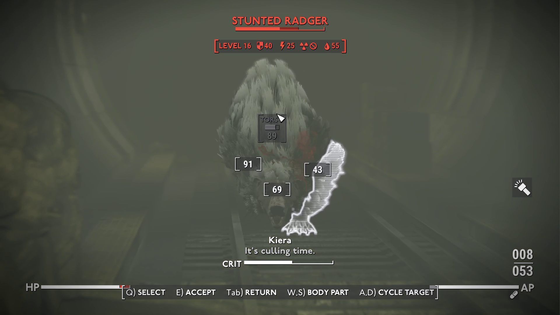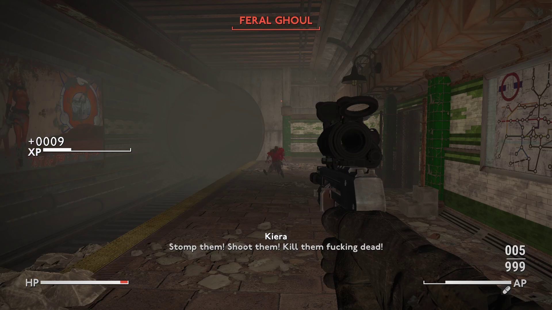 In the dungeons you will encounter mutated monsters and feral ghouls. At the end of the tunnel there is also a quite tough enemy waiting for you: a mutated badger. Defeat him and enter the elevator at the end of the room.