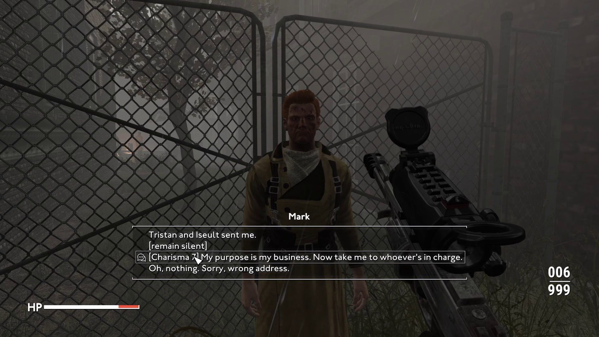 The entrance to the station is guarded by a man named Mark. You can try to convince him to let you in or start shooting right away.