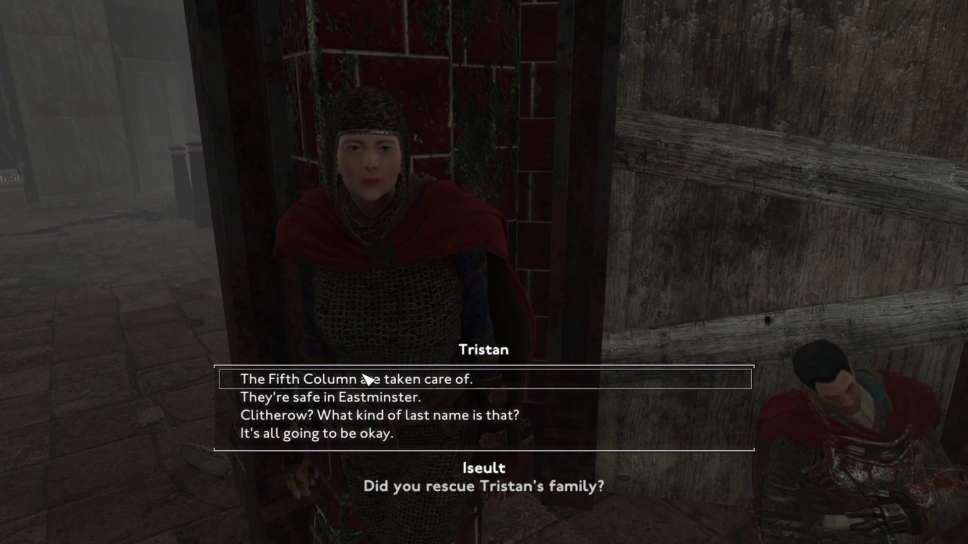 The elevator ride takes quite some time, so be patient. Once you get out, you'll find Tristan, who's wounded, and Iseult, who's accompanying him. The knights will admit that it was them who planted the explosives at the station. They were forced to do so by the Fifth Column, which kidnapped Tristan's family. Your task will now be to rescue the prisoners from the hands of the enemy faction.