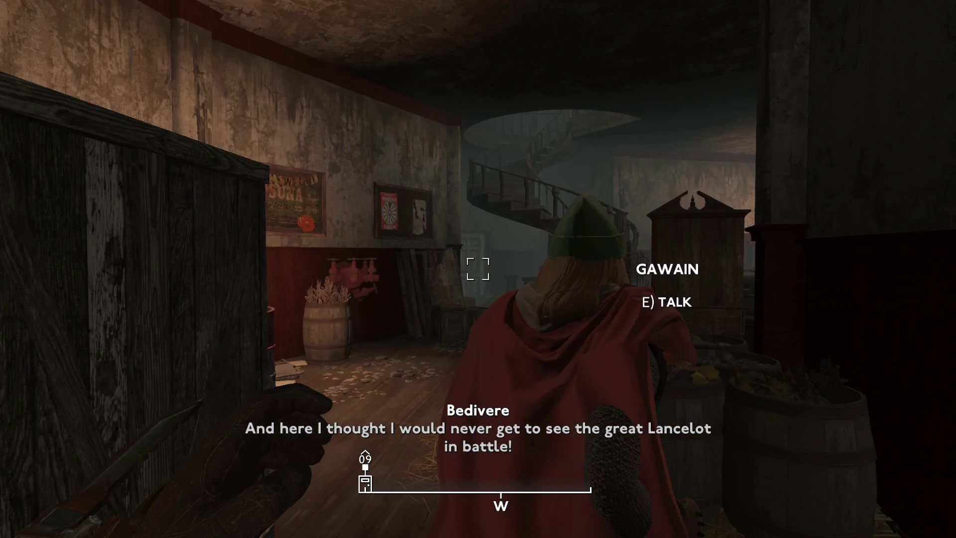 On the first floor, defend Percival against the aggressors. Once you've done that, go downstairs to meet Arthur and Merlin.