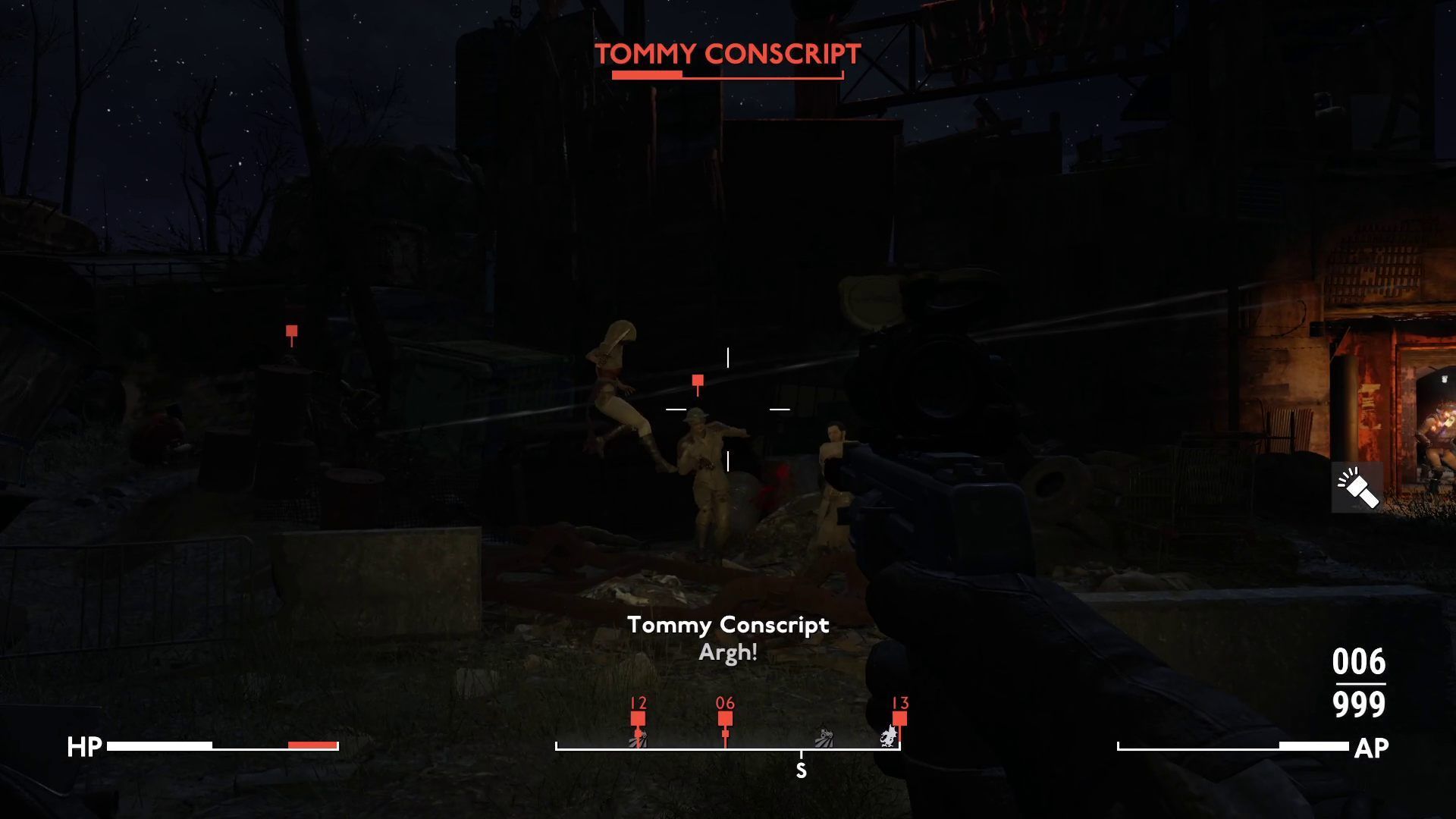 Defeat the first group of soldiers. Be careful not to accidentally harm your allies. In the chaos of battle, the VATS system will come in very handy.