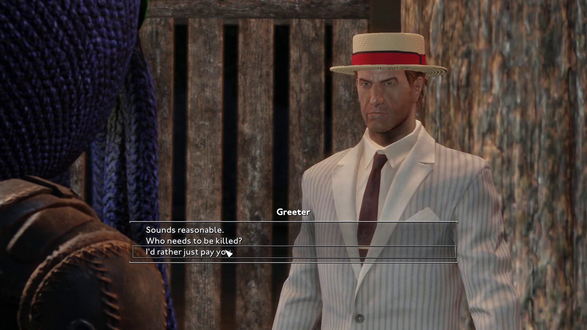 Before entering, you will be accosted by a doorman who will refuse to let you in or sell you a ticket. He will agree to let you pass only if you solve the problem of an annoying robot hanging around the area.