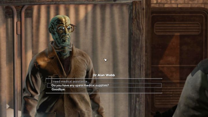 - Theft - you can steal a stimpak next to Dr. Alan Webb's stand. You must have good stealing skills to avoid getting caught.