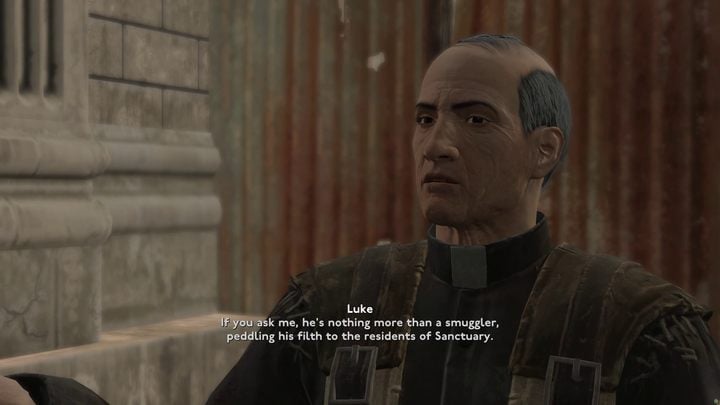 Ask the ghoul cleric about Lazarus. Whaler will tell you the story of his former friend and advise you to go to Father Luke, another priest stationed at the sanctuary, for more information.