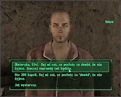 Your targets are: Allistair Tenpenny from Tenpenny Tower, Dukov from Dukov's Place, Dave from the Republic of Dave and Ted Strayer from Rivet City. Like I've already said, only three targets carry unique keys. In each case you can convince a target that he should hand over his key peacefully (screen). This can be done by winning a speech challenge or by offering a bribe. Alternatively you can shoot first and ask questions later, but obviously such actions would result in karma losses. I should tell you that the keys are needed to gain access to a secret lab hidden in Fort Constantine.