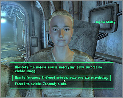 - During your first conversation with Angela Staley you'll find out that she's in love with Diego. Sadly they can't be together, because the boy is an acolyte in Saint Monica's Church. You can solve this problem trying to achieve a good or a bad ending. First of all, you can convince Diego that the church should be the most important thing for him and that he should keep ignoring Angela. You can talk to Father Clifford and convince him (by lying) that Angela and Diego are sleeping together. If you want to find a positive outcome, you must gain possession of ant queen pheromones. You can acquire the pheromones if you decide to kill the queen located in Grayditch sewers (Those! subquest). You can also travel to Shalebridge (the queen can be found in Shalebridge tunnels - hill) or to Corveg factory. Give the pheromones to Angela (screen). Sadly, she won't give you anything in return, so you're doing this for your personal satisfaction.