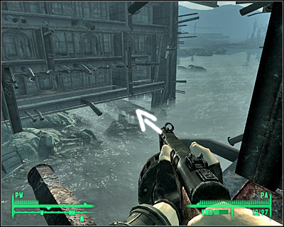 - Pinkerton will be mentioned by a few of Rivet City citizens and reaching him is required to fulfill two subquests. Obviously it won't be easy to find him. Head over to Rivet City market and choose a passageway leading to a torn part of the ship. You should be standing in front of a large gap (screen). Jump into the water and swim towards an underwater passageway. It'll lead you to a door to Rivet City - Broken bow. You'll be dealing with a lot of flooded corridors in this side of the ship. There are also a few mirelurks for you to take care of. Watch out for Pinkerton's traps, because they're difficult to spot. Finding his hideout shouldn't be hard from here. Don't forget to take at least one RadAway after you leave the water.