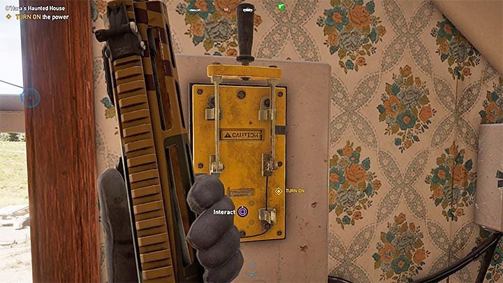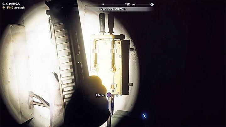 A jump on the scaffold will allow you to pass through the shutter and get to the first floor of the building. Here, find a switch shown in the picture that will restore the power supply.